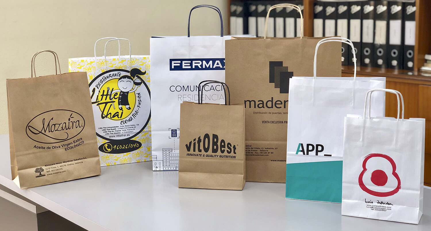 - Etiquetas personalizadas: consiste en colocar etiquetas personalizadas en las bolsas de papel. Es una técnica muy sencilla y económica que permite obtener un resultado muy efectivo.